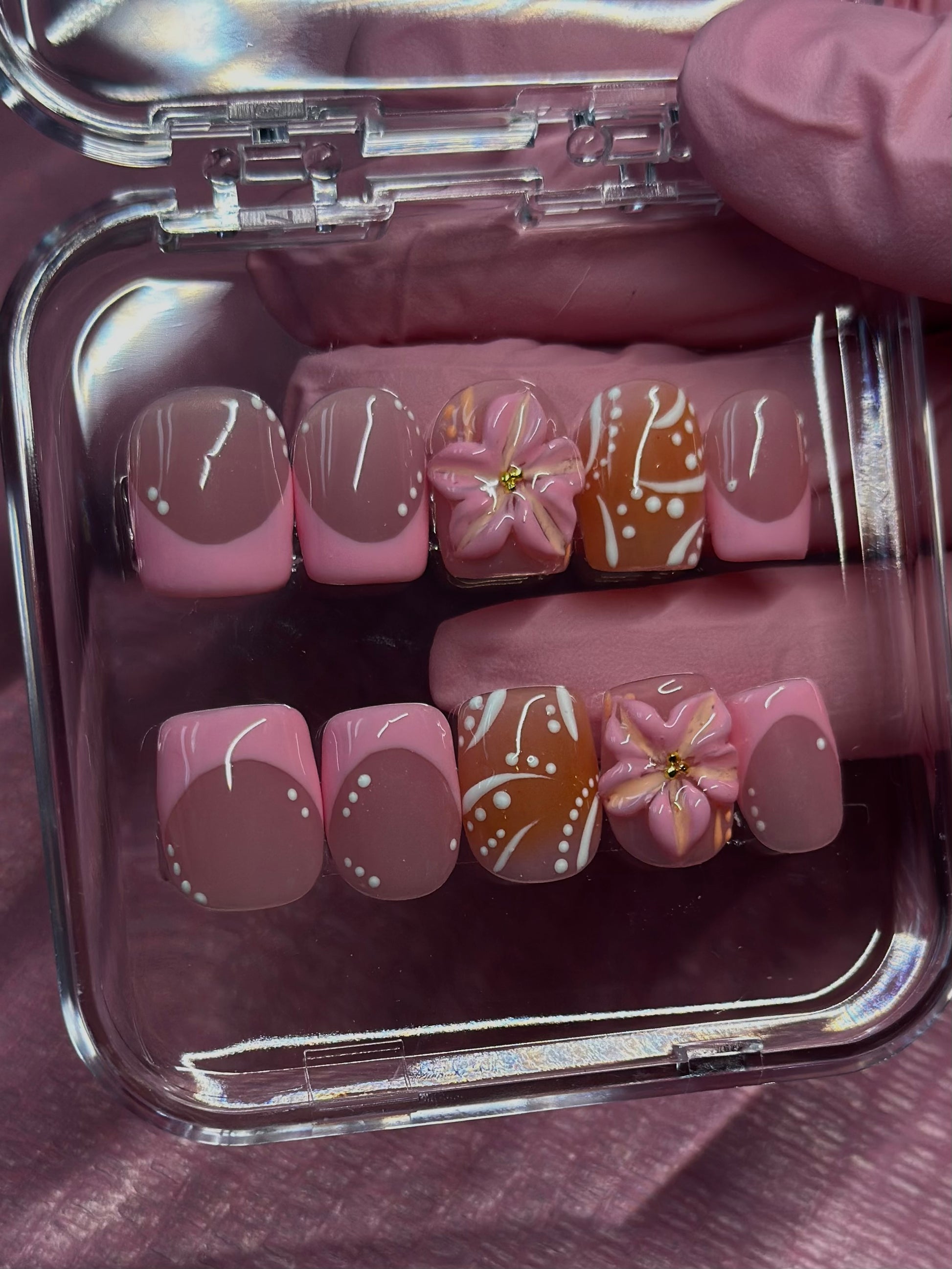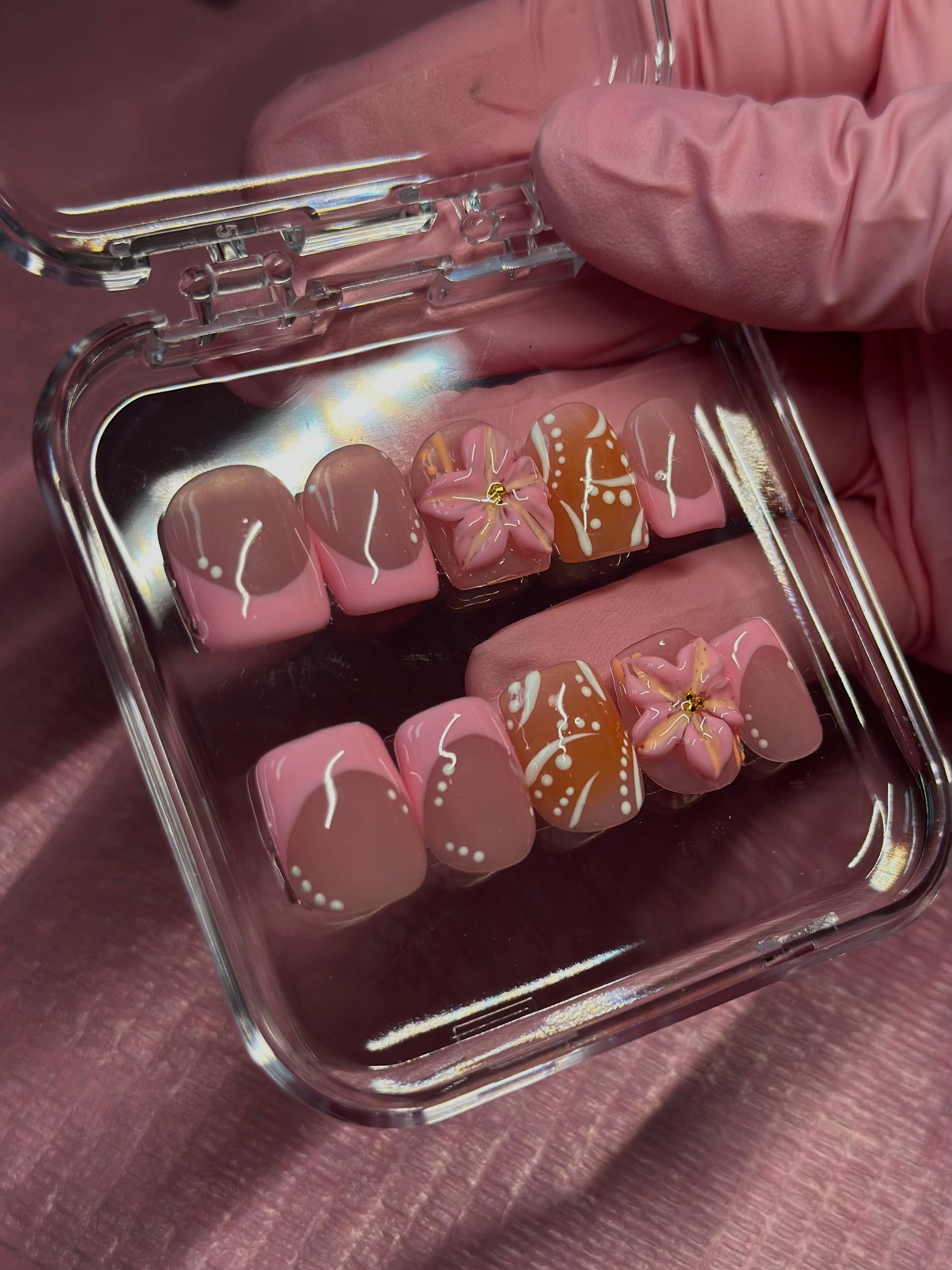 Pink and Orange Press on Nails | 3D flower | Hand painted, Gel Manicure, French tip, Reusable Presson Nails, Summer Nails, Vacation Nails