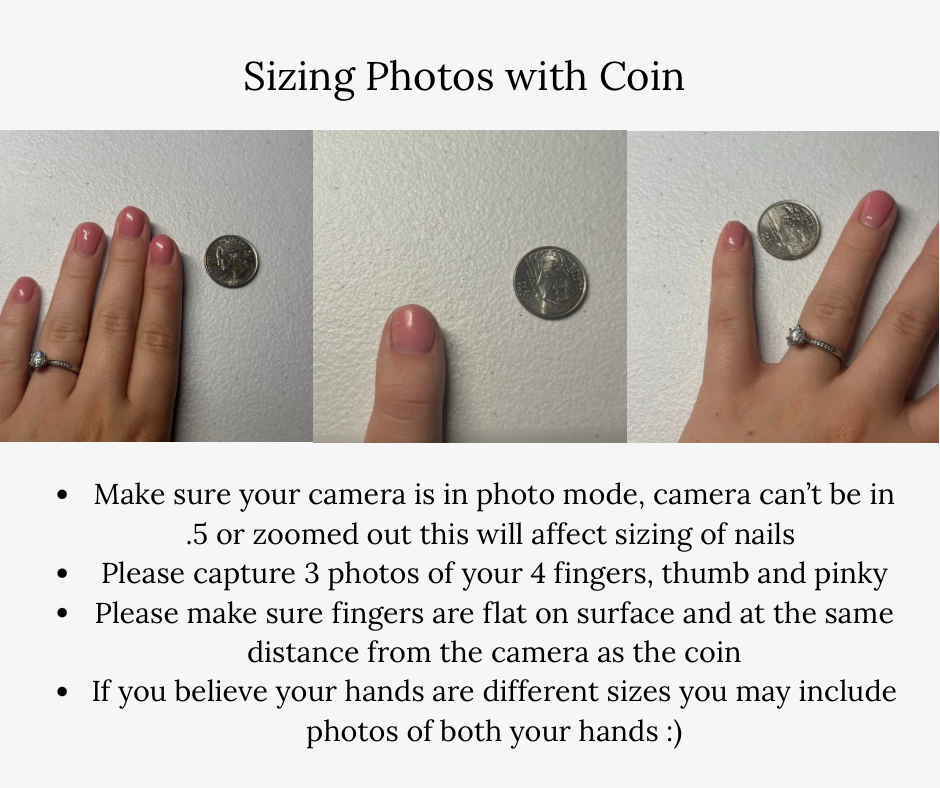 My shop does custom sizing, so please message me with photos of you hand next to a coin! Can be a penny, quarter, dime, or nickel, it doesn’t matter which one. See photos for reference :) If you know your sizing in mm or XS,S,M,L you may also insert that sizing into the personalize box!